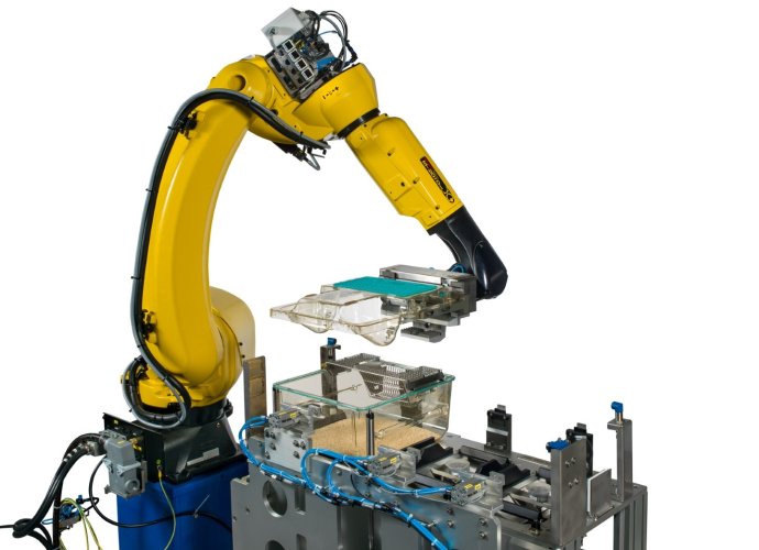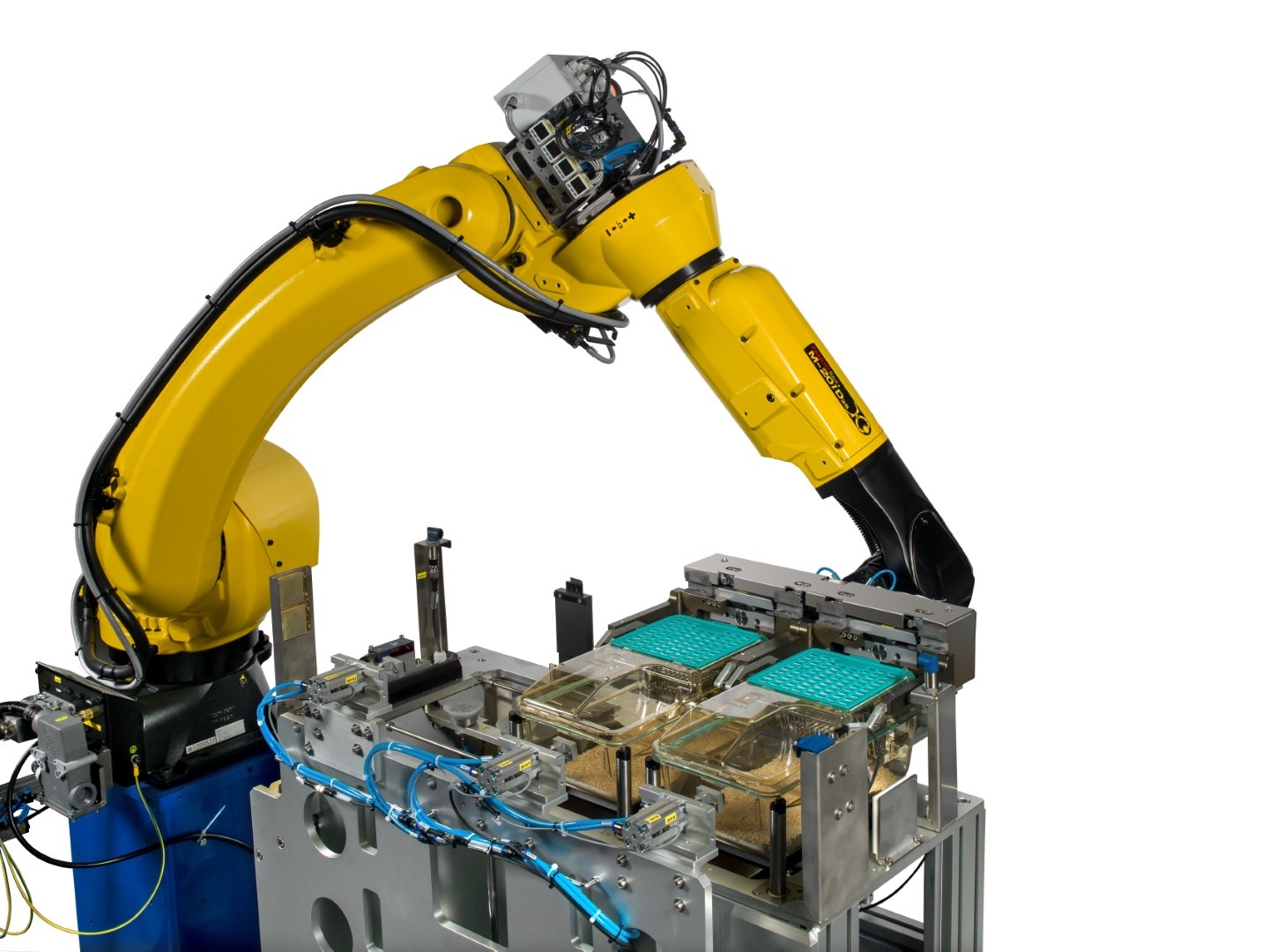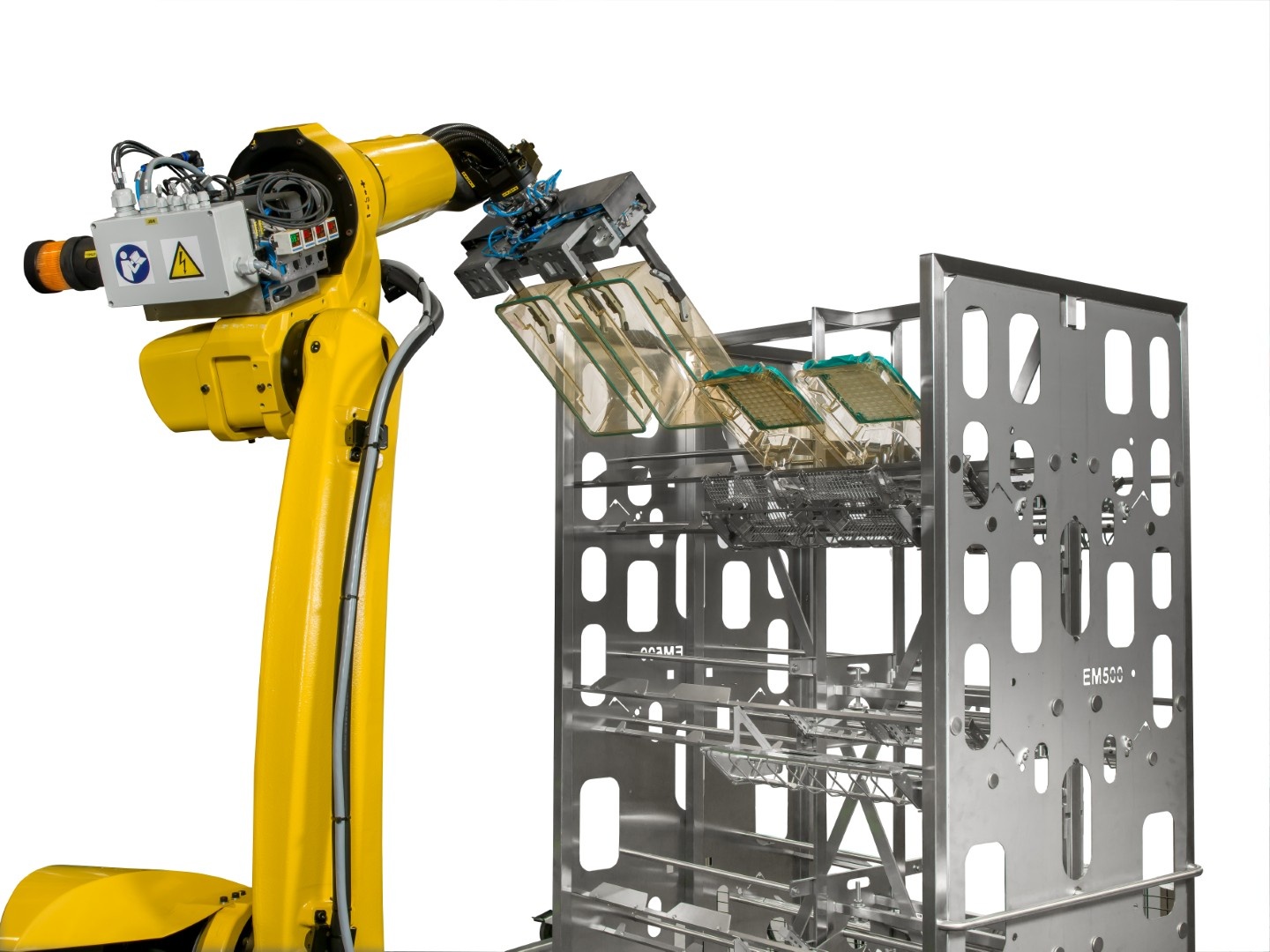 Robot wyposażony jest w dedykowane chwytaki umożliwiające jednoczesne przenoszenie dwóch klatek mysich lub jednej klatki szczurzej. System automatycznie rozpoznaje obecność klatek, ich orientację oraz kompletność elementów, co pozwala na płynną i bezbłędną pracę bez przestojów. Modułowy układ umożliwia również automatyczną zmianę chwytaków przy obsłudze różnych typów klatek.