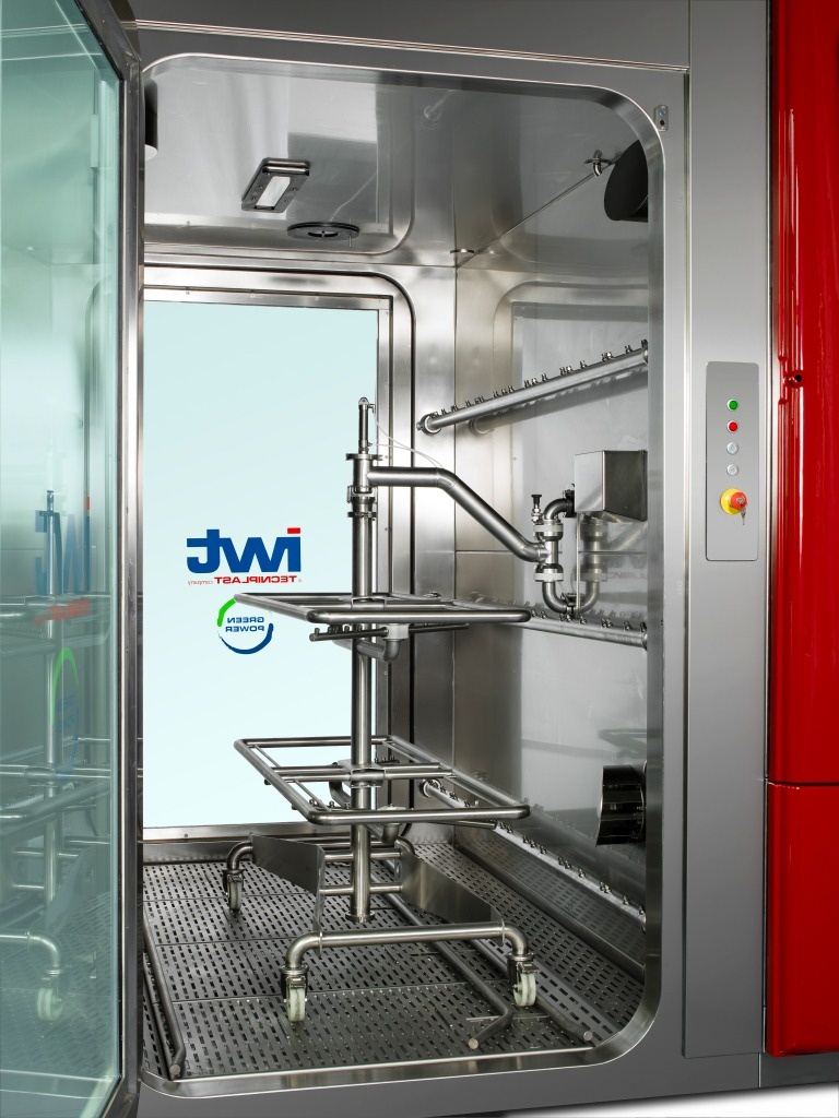 Efektywny system suszenia gorącym powietrzem, wyposażony w odzysk ciepła oraz/lub automatyczną podłogę przechylną, zapewniającą skuteczne odprowadzanie wody po cyklu.