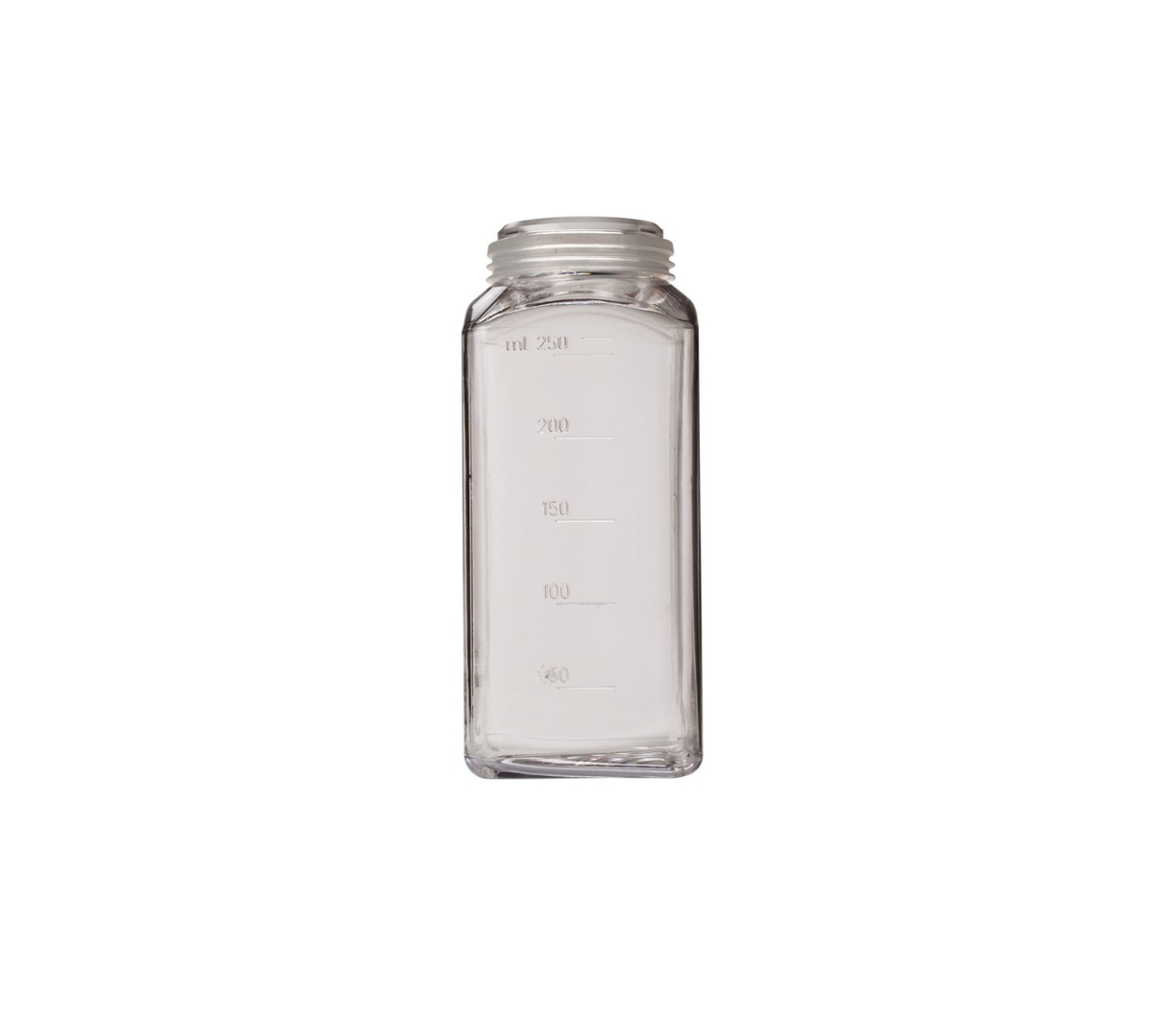- Butelki wykonane są z przezroczystego poliwęglanu (PC), spełniającego wymagania FDA Title 21. Mogą być sterylizowane w autoklawie w temperaturze 121°C przez 20 minut.