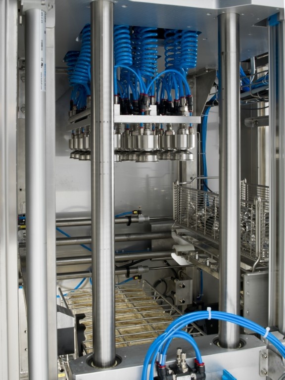Dostępne opcje obejmują m.in.: elektropolerowany stół z miejscem na jednostkę do zakwaszania wody (zastosowania z wodą kwaśną), zmotoryzowany stół buforowy z automatycznym transportem koszy, możliwość obsługi po stronie załadunku i rozładunku, zwiększenie przepustowości i autonomii systemu.