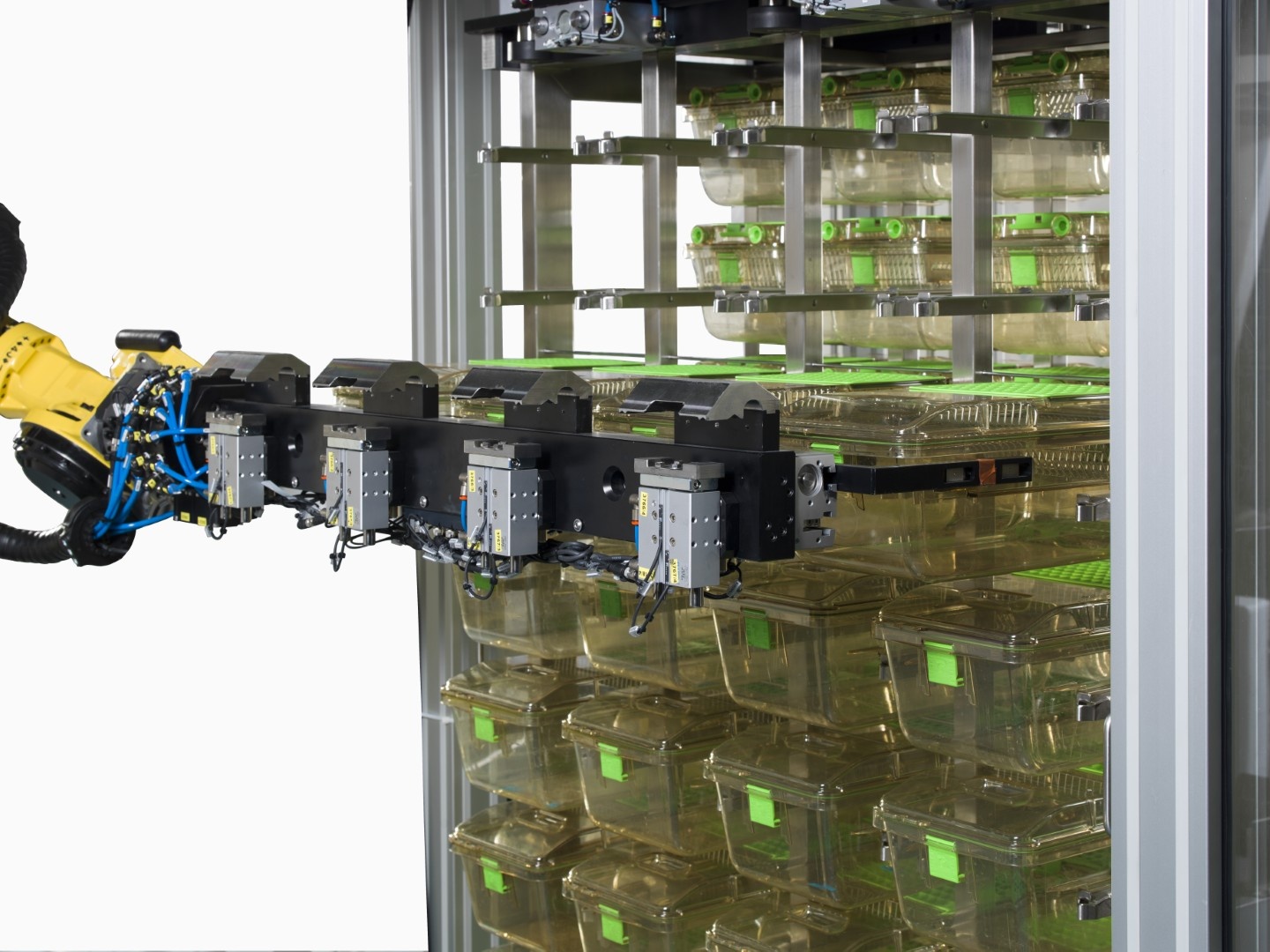 COSMOS to w pełni zautomatyzowany system robotyczny przeznaczony do obsługi kompletnych klatek laboratoryjnych (podstawa, pokrywa, ruszt) we współpracy z myjnią tunelową ARCADIA. Rozwiązanie zostało zaprojektowane dla nowoczesnych zwierzętarni i laboratoriów o wysokiej przepustowości, w których kluczowe znaczenie mają bezpieczeństwo biologiczne, ergonomia pracy oraz ciągłość procesu. System automatyzuje cały cykl – od rozładunku brudnych klatek, przez opróżnianie i przygotowanie do mycia, aż po ponowny montaż i napełnianie ściółką czystych zestawów.