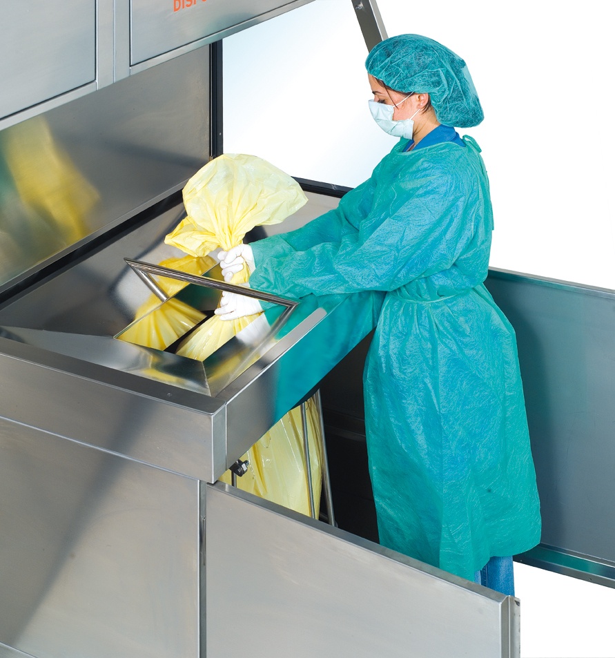 Stacja DS72 została zaprojektowana z myślą o intensywnej eksploatacji w obiektach o dużym wolumenie przetwarzania klatek. Komora robocza wykonana jest ze stali nierdzewnej AISI 304L, co gwarantuje trwałość oraz odporność na środki dezynfekcyjne. Duży otwór roboczy z przesuwnym lejem redukcyjnym ułatwia usuwanie worków odpadowych przy zachowaniu ciągłej ochrony powietrznej. Panel sterowania umieszczony na wysokości wzroku pozwala na wygodne monitorowanie parametrów pracy, regulację wentylatora oraz kontrolę alarmów.