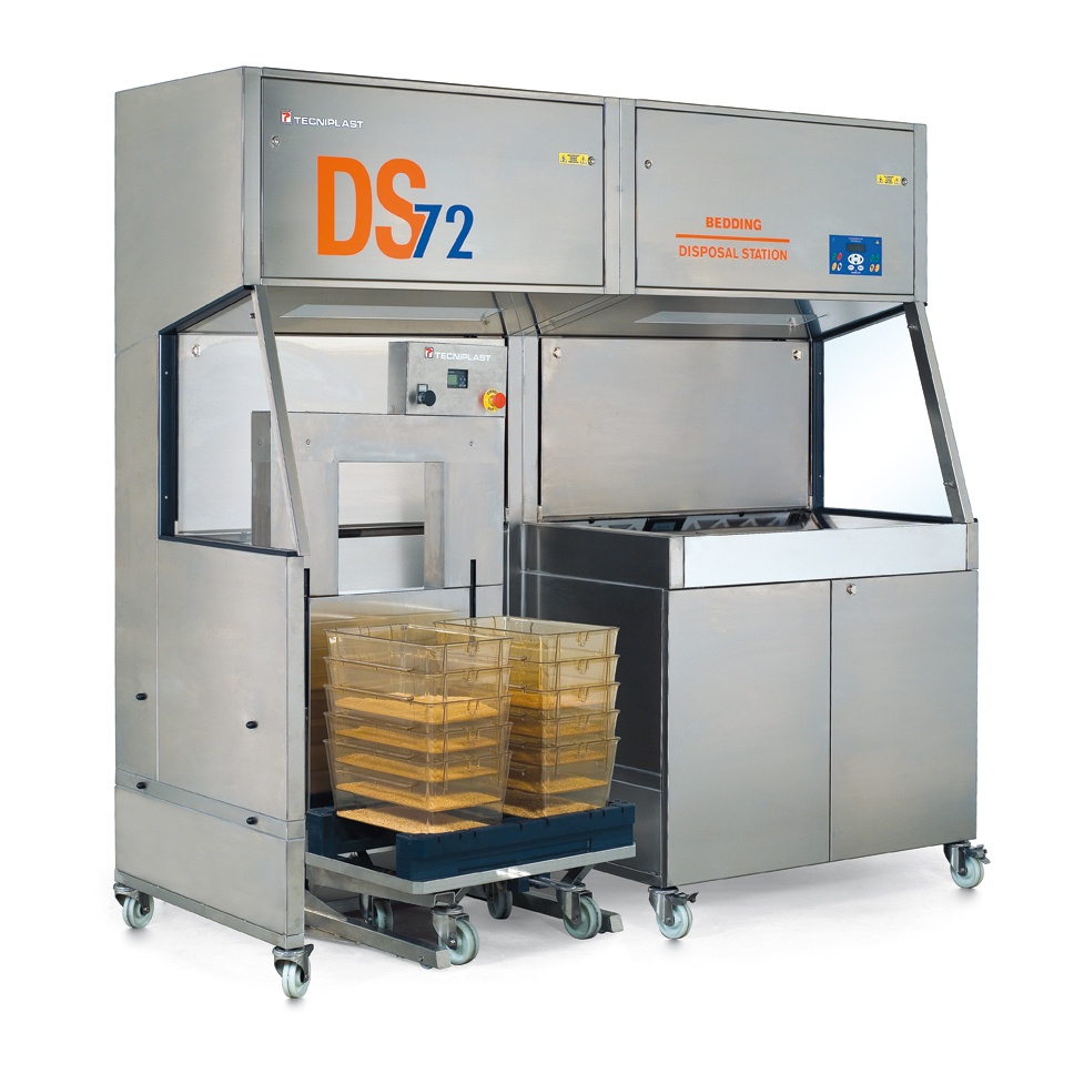 DS72 to zaawansowana stacja opróżniania ściółki (bedding disposal station), zaprojektowana w celu ochrony operatora i środowiska przed alergenami oraz zanieczyszczeniami unoszącymi się w powietrzu podczas opróżniania klatek. Rozwiązanie dedykowane jest nowoczesnym zwierzętarniom i laboratoriom badawczym, w których kluczowe znaczenie ma bezpieczeństwo biologiczne, ergonomia pracy oraz wysoka wydajność operacyjna. Duża przestrzeń robocza umożliwia jednoczesną obsługę wózków z klatkami oraz sprawne wysypywanie ściółki do dedykowanego pojemnika odpadowego.