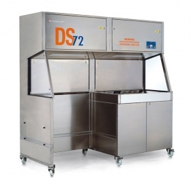 DS72 została zaprojektowana z myślą o łatwej dekontaminacji. Zaokrąglone narożniki komory oraz bezśrubowy system dostępu do prefiltrów umożliwiają szybką wymianę filtrów w warunkach chronionych przez strumień powietrza. Konstrukcja minimalizuje gromadzenie się zanieczyszczeń i ułatwia utrzymanie wysokiego standardu higieny. Dostępna jest również wersja w całości wykonana ze stali nierdzewnej AISI 304.