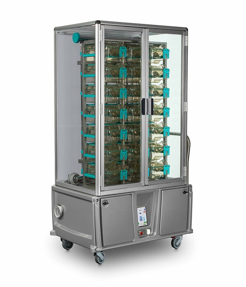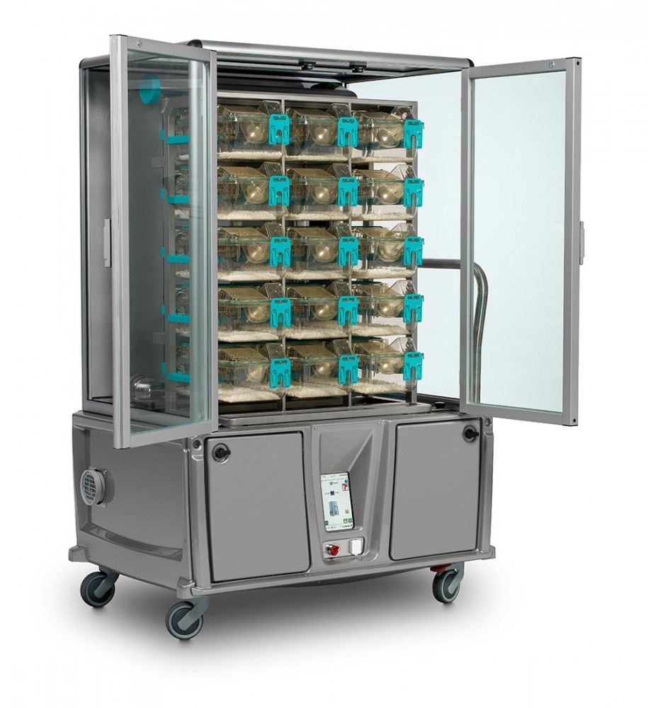 Nowy regał rekonwalescencyjny z wbudowanym nawilżaczem został zaprojektowany tak, aby zapewnić kontrolę wilgotności, temperatury oraz wentylacji wewnątrz klatki domowej podczas eksperymentów oraz w okresie pooperacyjnym. Regał rekonwalescencyjny stanowi idealne rozwiązanie zapewniające dobrostan zwierząt oraz umożliwiające izolację wybranych zwierząt osłabionych lub chorych w celu kontroli weterynaryjnej lub leczenia.