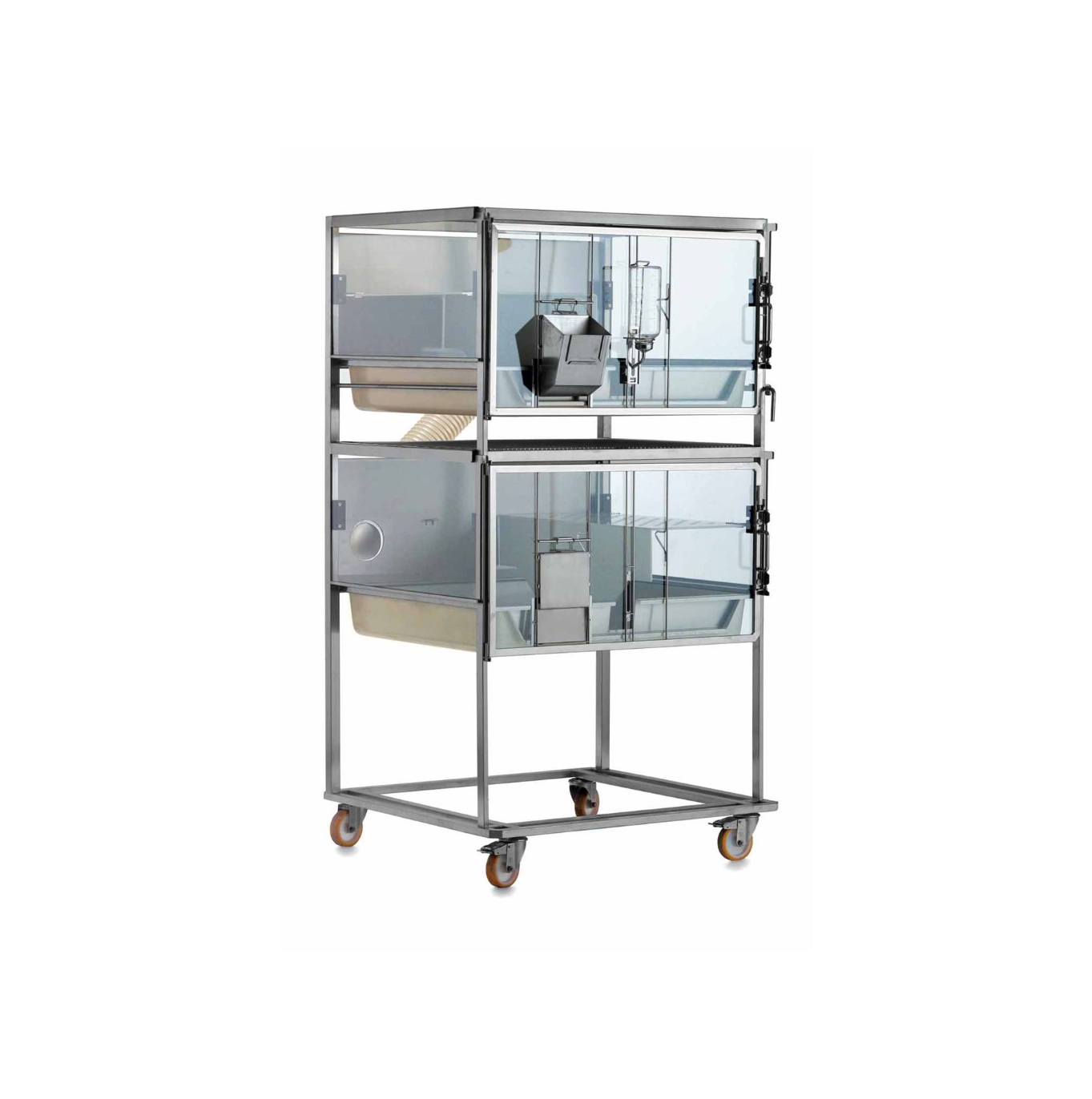 - Lepszy dobrostan zwierząt: F-Suite wzmacnia zachowania społeczne, tworzy idealne, trójwymiarowe, wzbogacone środowisko; stelaż ze stali nierdzewnej z cichymi panelami poliwęglanowymi pomaga uniknąć stresu u zwierząt.