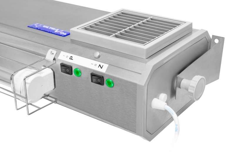 - sufitowe — montowane pod stropem pomieszczenia, idealne do dezynfekcji powietrza i powierzchni w otwartych przestrzeniach, korytarzach, salach i laboratoriach,