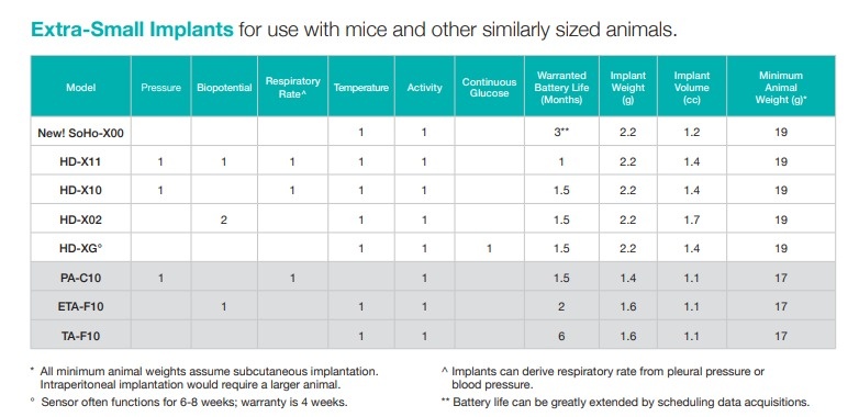 - mniejszym rozmiarem implantów – idealnym do badań na myszach i innych niewielkich gatunkach (od 17 g),