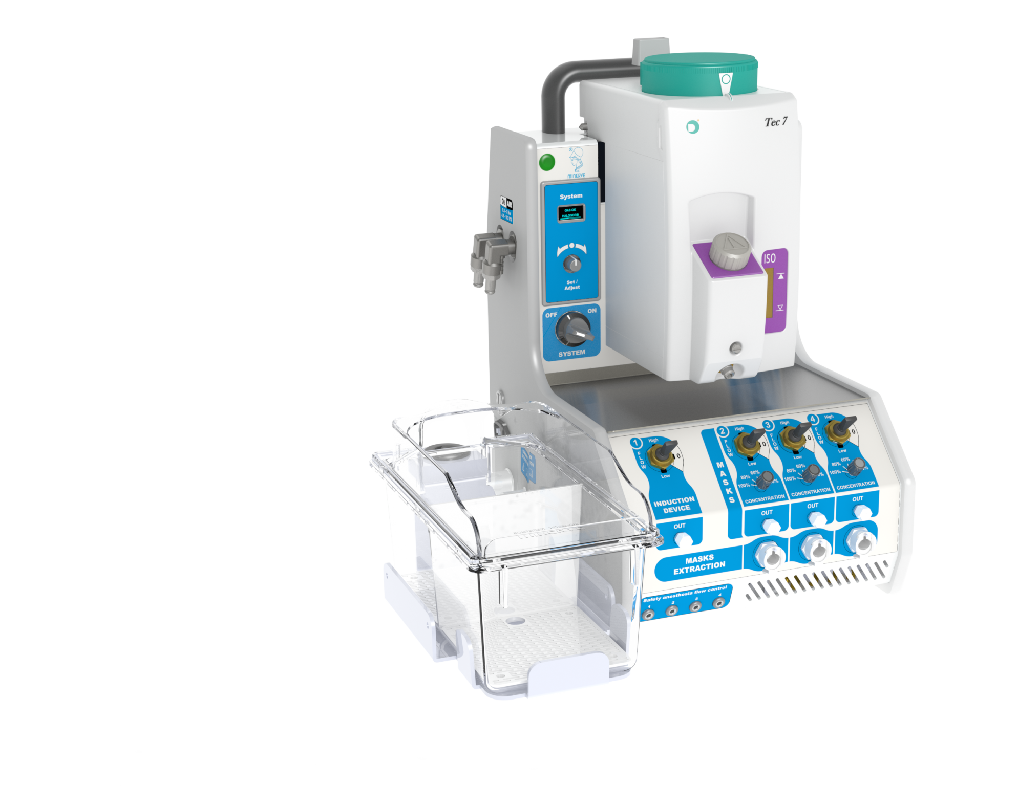 Urządzenie umożliwia dokładną regulację przepływu gazu i stężenia środka anestetycznego, niezależnie dla każdego akcesorium. Znacząco redukuje to całkowite zużycie anestetyku w porównaniu do klasycznych systemów anestezji.