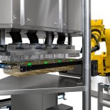 System wykorzystuje przemysłowy robot 6-osiowy z dedykowanym chwytakiem, umożliwiający obsługę wielu klatek jednocześnie. Zamknięta cela z zabezpieczeniami zapewnia ochronę operatorów, a ograniczenie czynności manualnych znacząco redukuje obciążenie fizyczne personelu. Operator odpowiada głównie za logistykę wózków, podczas gdy kluczowe operacje realizowane są automatycznie.