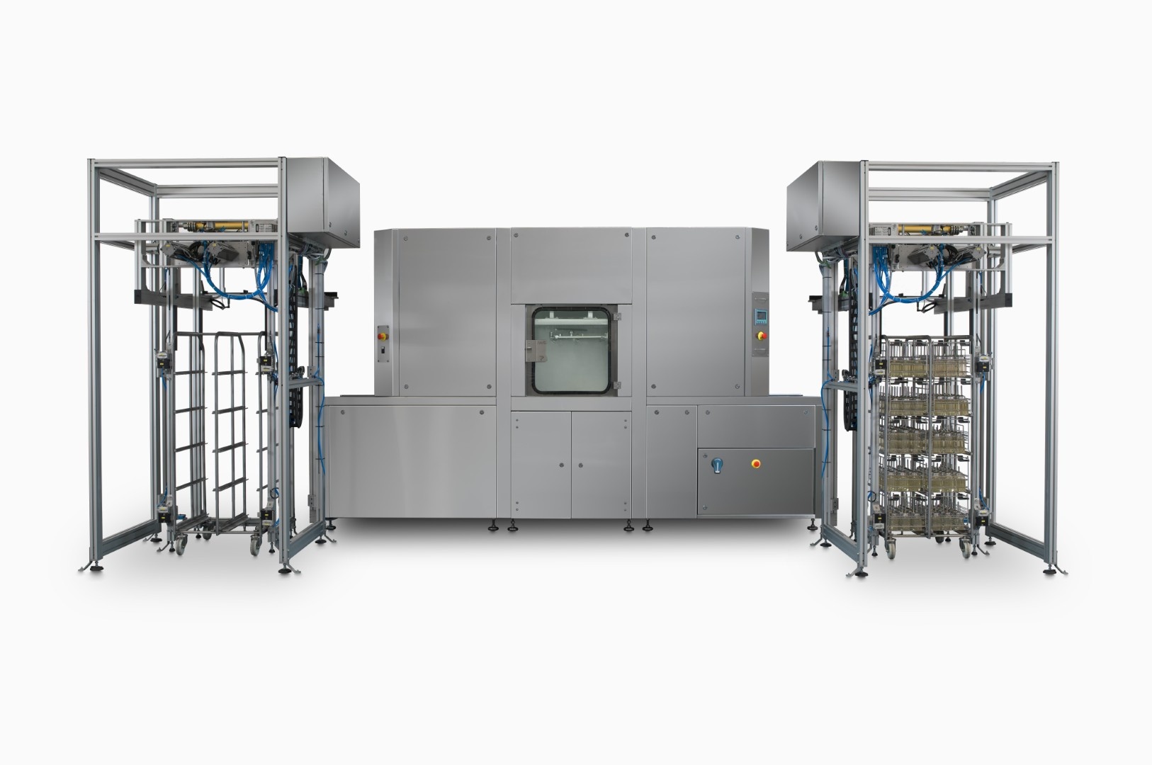 POSEIDON to w pełni zautomatyzowany system do obsługi, mycia i przetwarzania butelek laboratoryjnych, zaprojektowany dla nowoczesnych zwierzętarni, laboratoriów badawczych oraz obiektów biofarmaceutycznych o wysokich wymaganiach higienicznych. System stanowi najwyższy poziom automatyzacji w obszarze logistyki butelek i może pracować jako samodzielne rozwiązanie lub jako rozszerzenie półautomatycznych linii procesowych.
