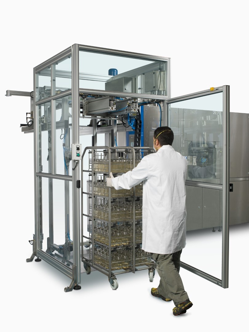 System eliminuje ręczne podnoszenie i manipulowanie butelkami, znacząco poprawiając ergonomię oraz redukując ryzyko błędów i kontaminacji.