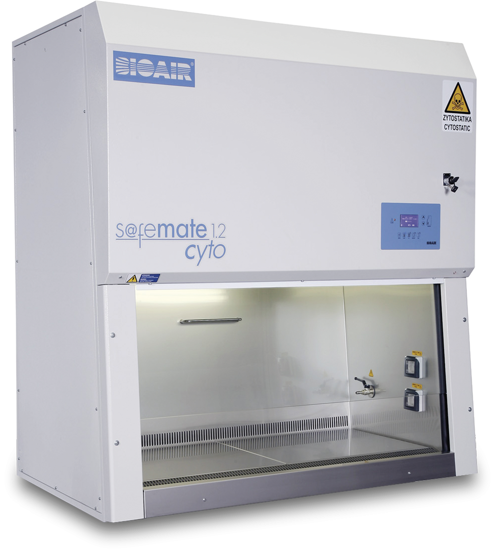 - Komora bezpieczeństwa mikrobiologicznego klasy II — specjalnie zaprojektowana do bezpiecznej pracy z lekami cytotoksycznymi, zgodnie z normami DIN 12980:2017 i EN 12469:2000.